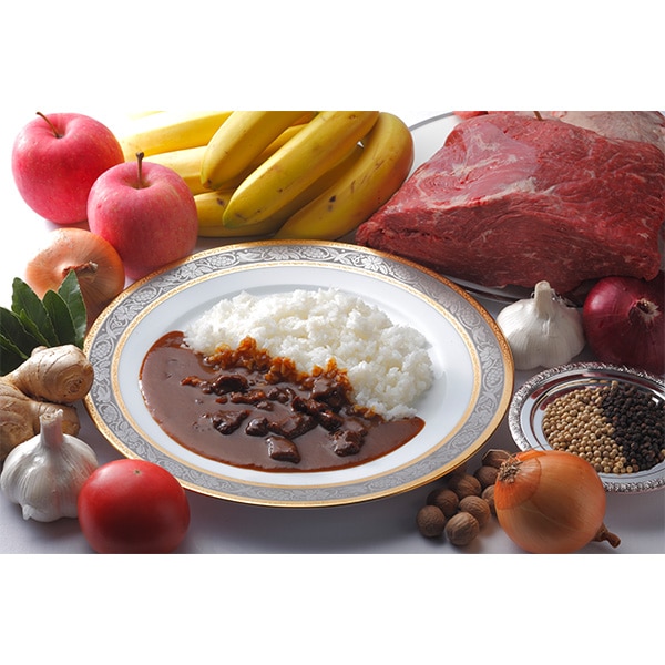 【ビーフカレー】牛肉、たまねぎ、チキンブイヨン(鶏がら、野菜(たまねぎ、にんじん)、チキンエキス、食塩、香辛料)、小麦粉、にんじんペースト、チャツネ、ラード、ソテーオニオン、ポークエキス、りんごペースト、バター、カレー粉、コンソメパウダー、トマトペースト、ミルポアペースト、ガーリックペースト、食塩、果糖ブドウ糖液糖、砂糖、しょうがペースト、ココナッツミルクパウダー、香辛料、ローストオニオンペースト、粉末卵白/カラメル色素、調味料(アミノ酸等)、炭酸Na、クエン酸、(一部に小麦・卵・乳成分・牛肉・大豆・鶏肉・バナナ・豚肉・りんごを含む)